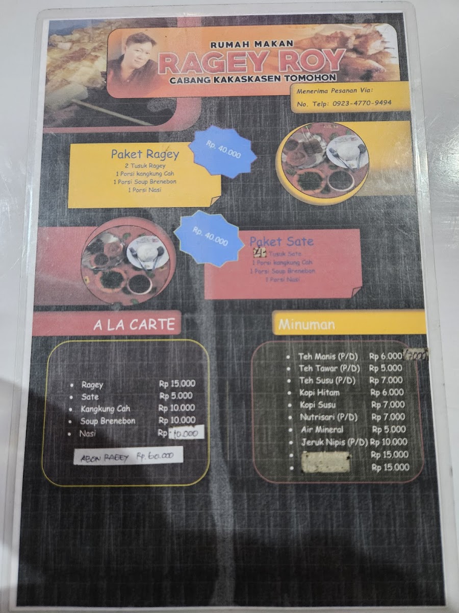 Roy’s Ragey Restaurant Menu